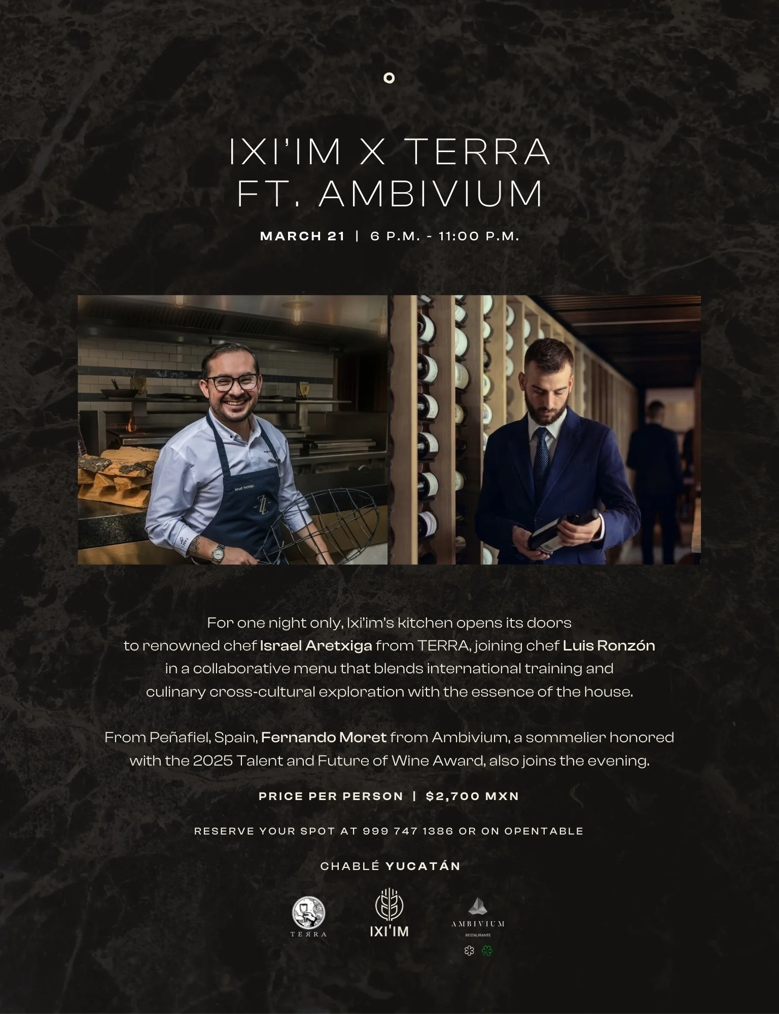 For one night only, Ixi’im’s kitchen welcomes renowned chef Israel Aretxiga from Terra, joining chef Luis Ronzón for a collaborative menu that celebrates international influences and the essence of the house.